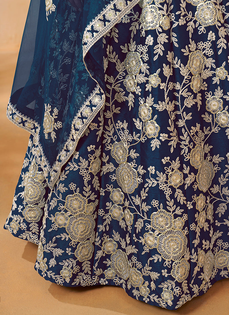 386705 Art Silk Navy Blue Wedding Wear Zari Embroidery Work Lehenga Choli