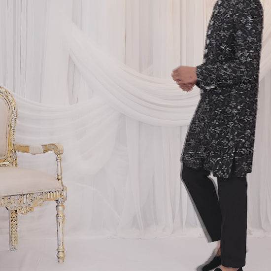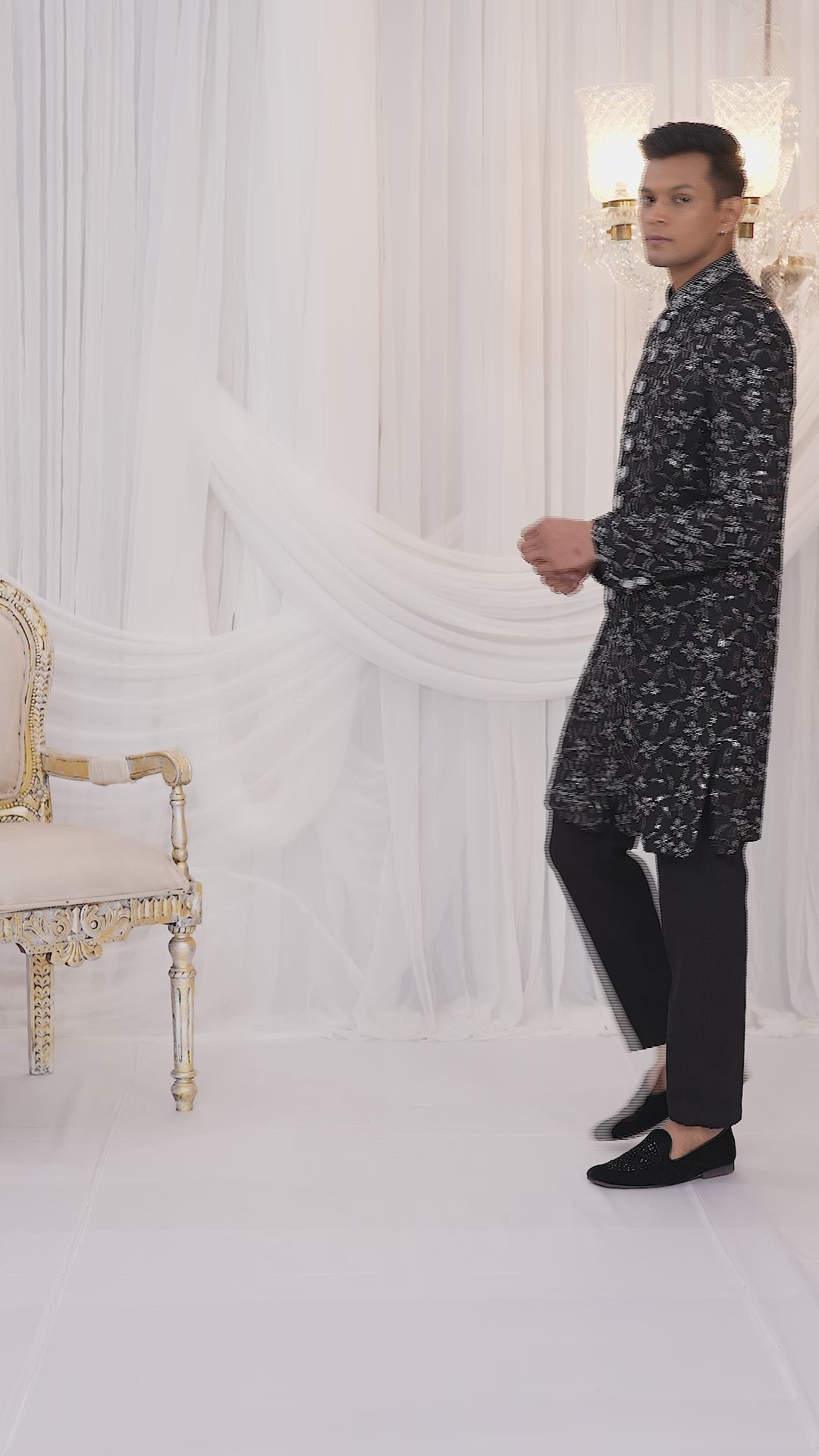 Art Silk Black Wedding Wear Indo Western Sherwani with Computer Thread Work