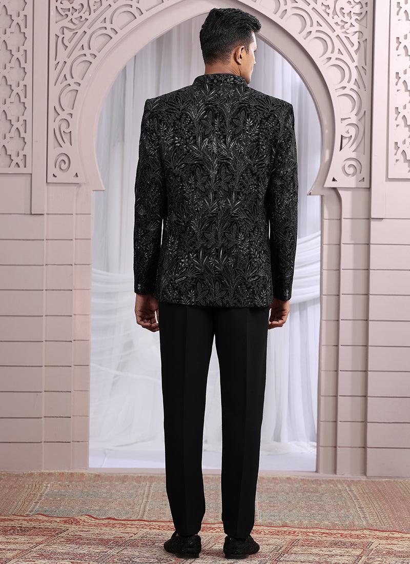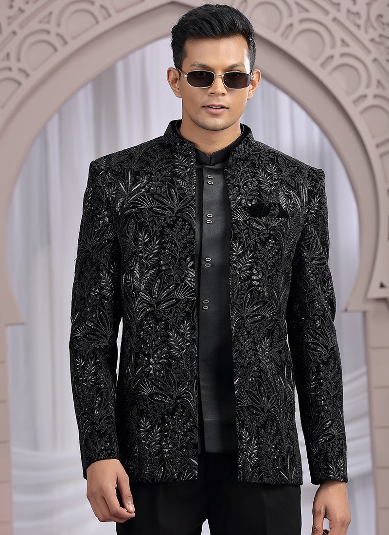 Art Silk Black Indo Western with elegant pattern pc embroidery, ideal for weddings.