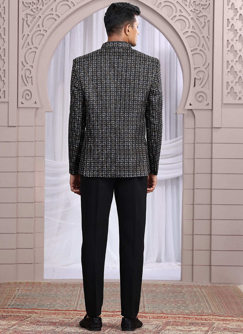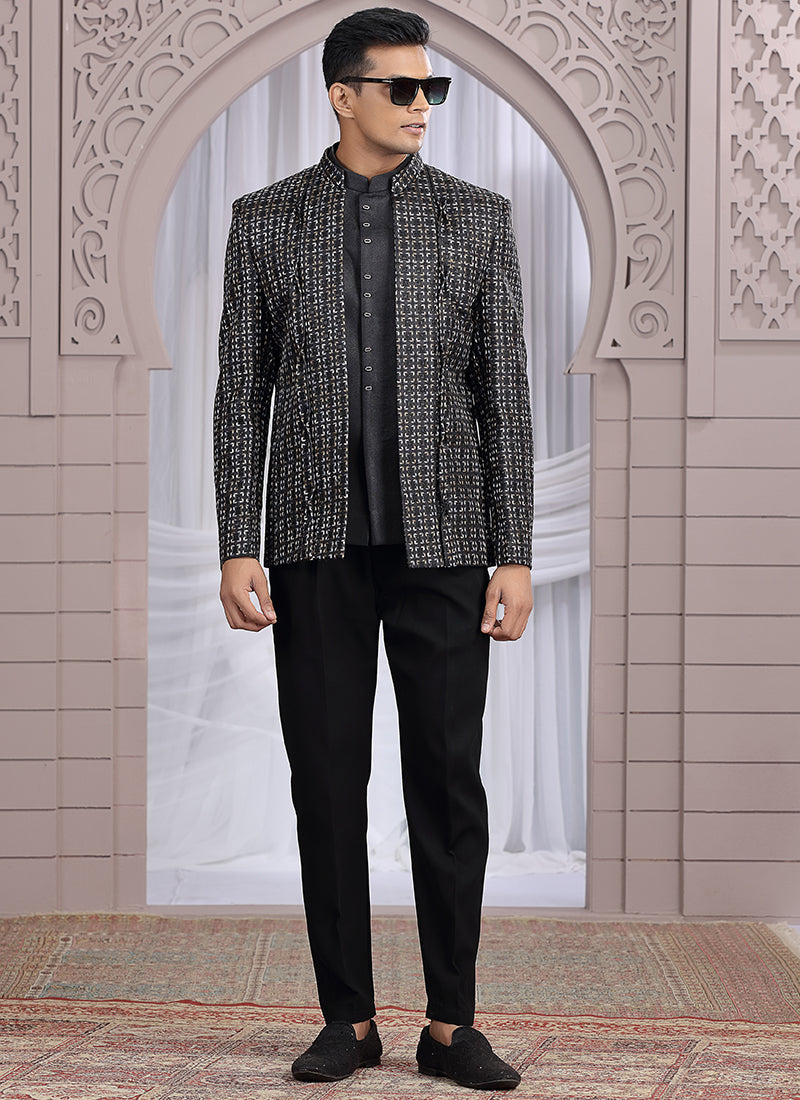 Art Silk Black Indo Western embellished with stylish pattern pc embroidery for weddings.