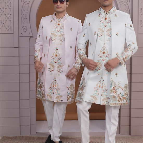 Art Silk Light Green Wedding Wear Indo Western Sherwani with Embroidery Work