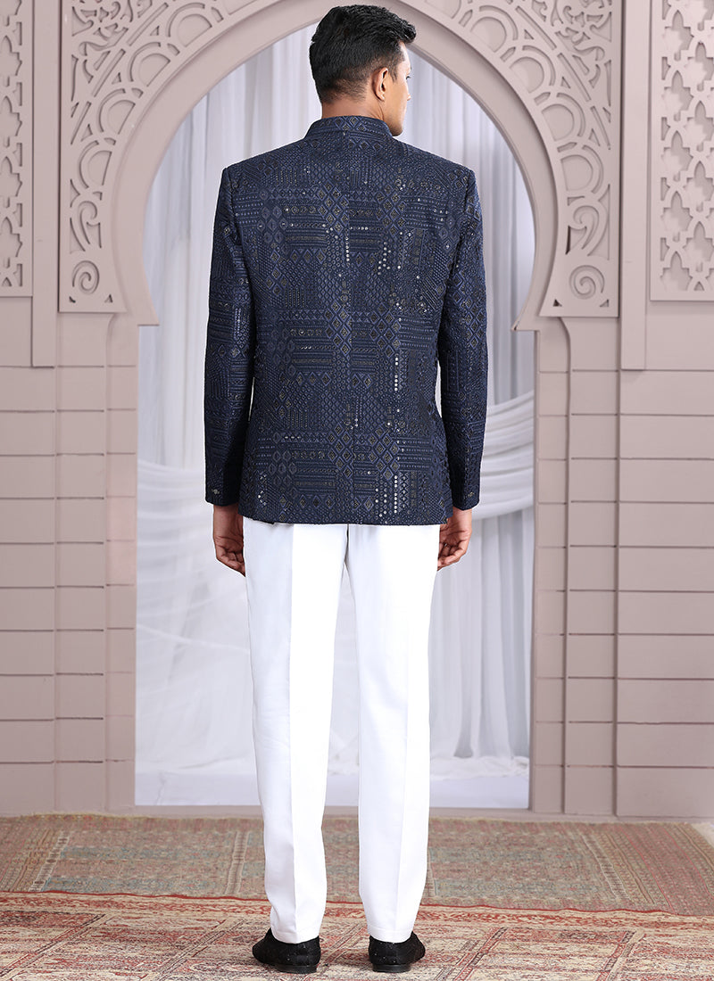 Art Silk Navy Blue Indo Western with detailed pattern pc work, ideal for wedding wear.