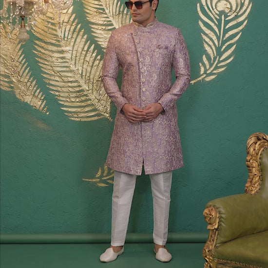 Art Silk Purple Wedding Wear Groom Sherwani with Hand Embroidery