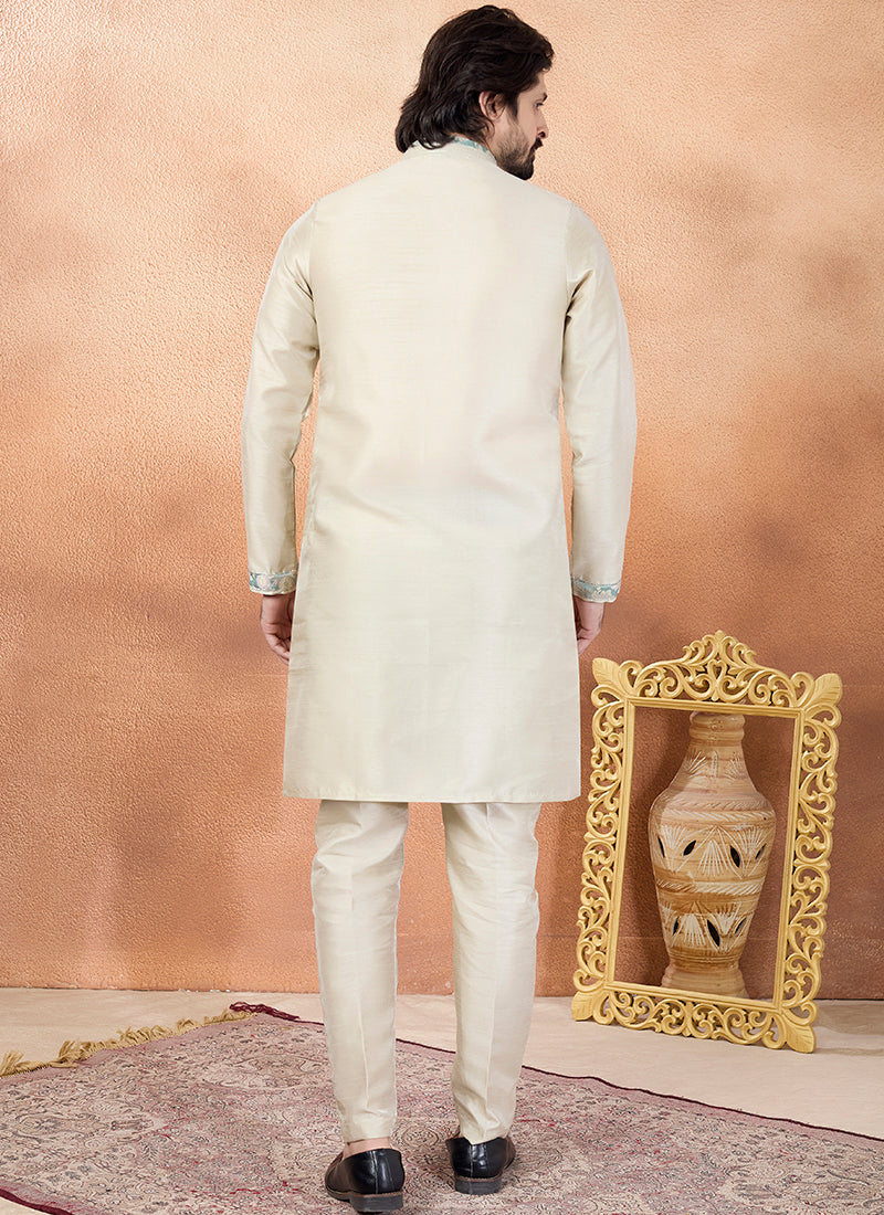 Baige Art Silk Pintux Occasional Wear Readymade Kurta Pajama SW368058
