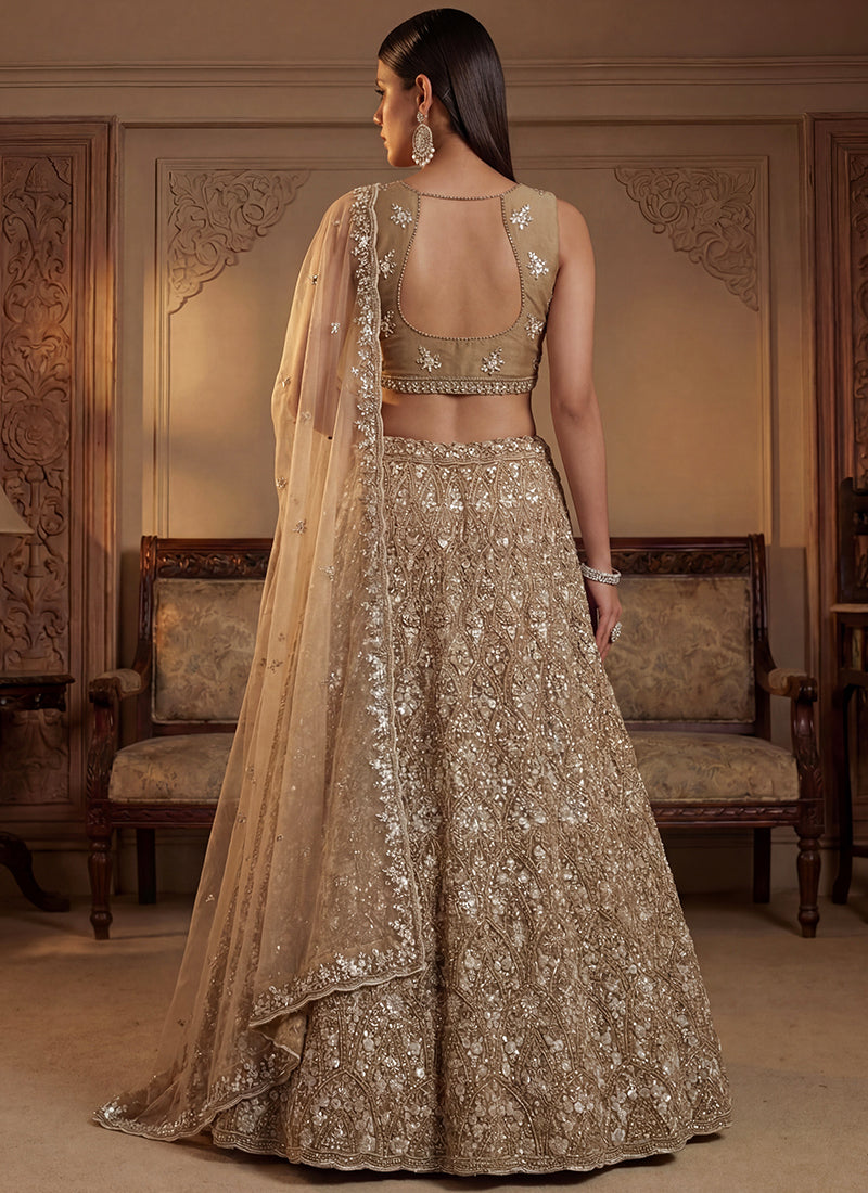 Beige Net Embroidery Work Bridal Wear Lehenga Choli SW920261