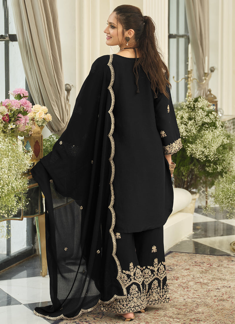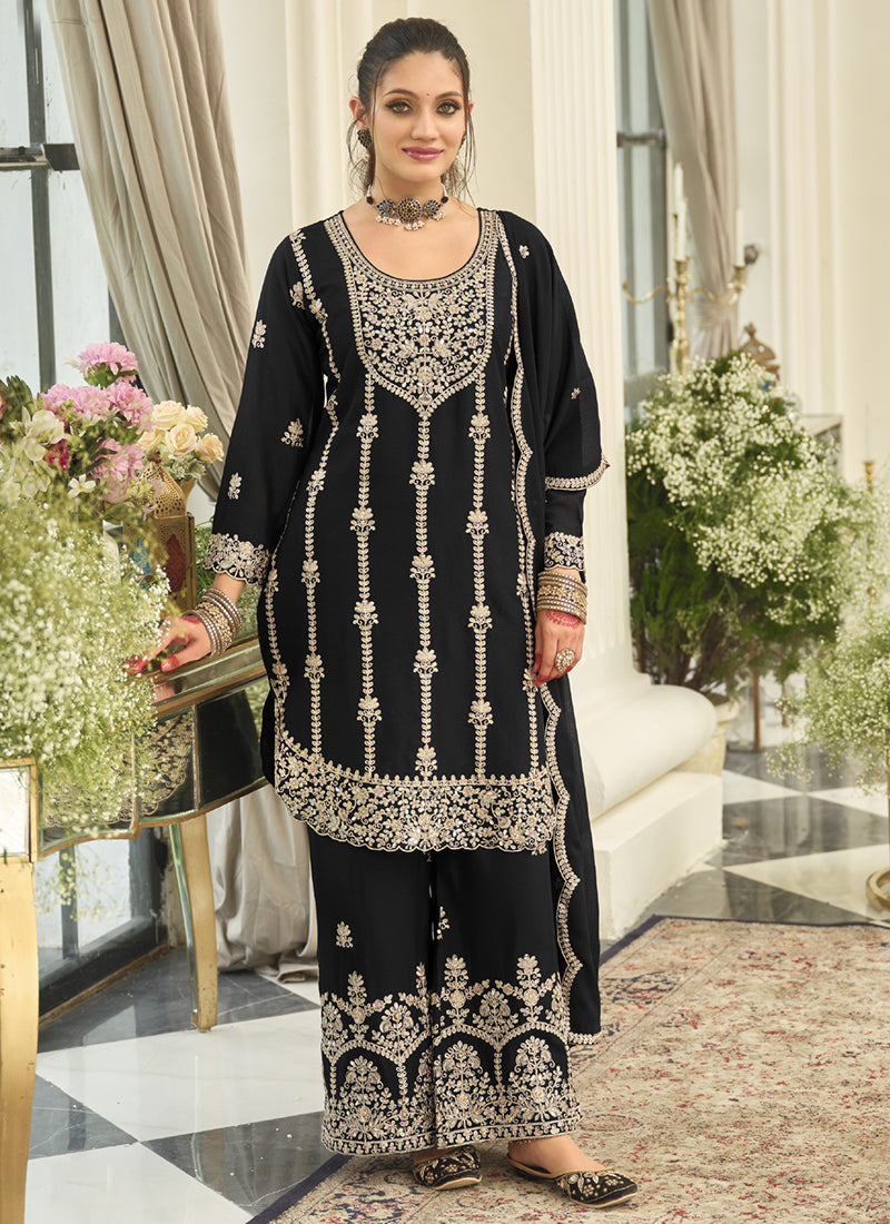Black Chinon Sequins Work Party Wear Readymade Plazzo Suit SW719168