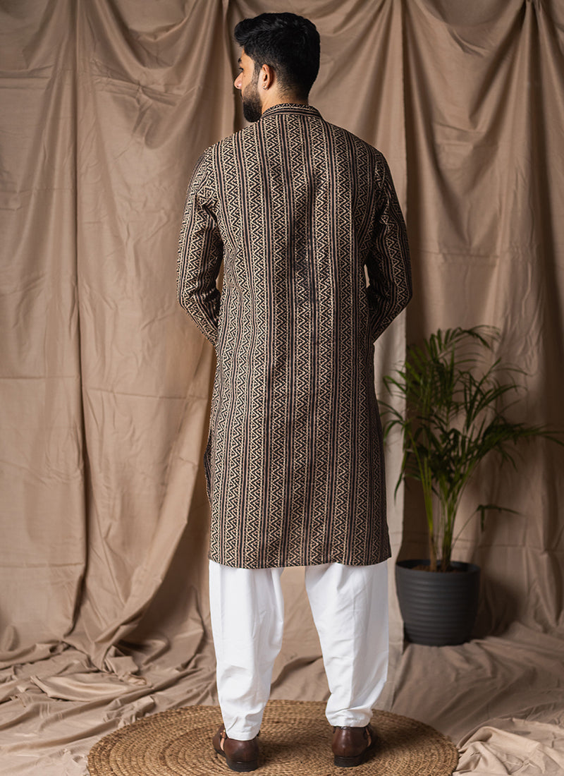 Black Modal Silk Printed Work Festival Wear Readymade Kurta Pajama, designed in classic black modal silk featuring stylish printed work.