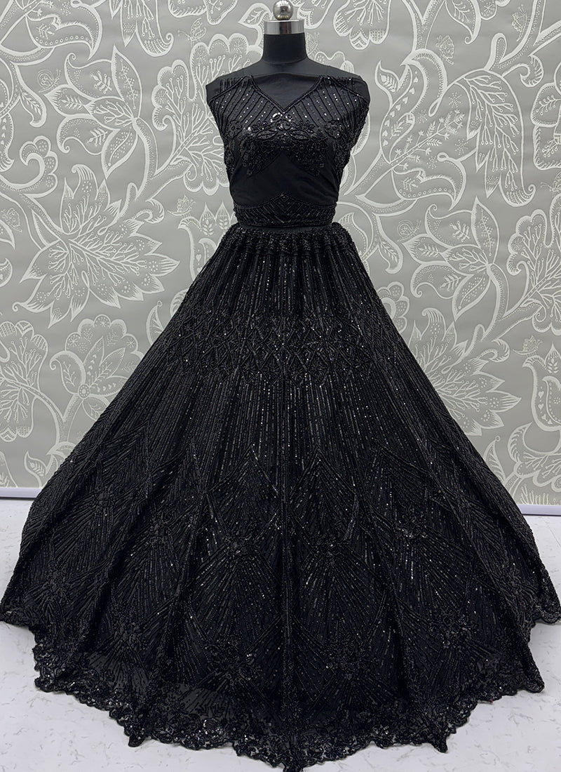 Black Net Embroidery Work Bridal Wear Lehenga Choli SW875375