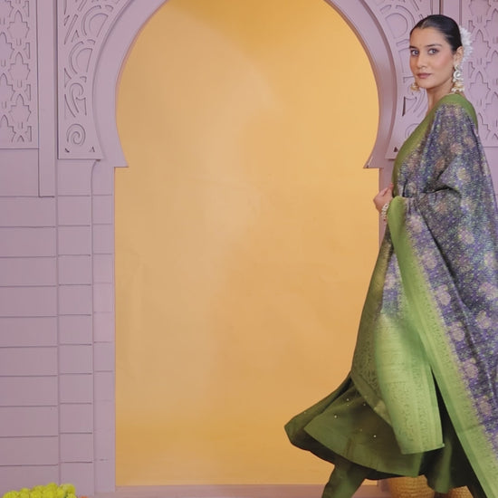 Chiffon Blue Festival Wear Readymade Anarkali Suit with Pattern Pc Work