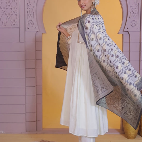 Chiffon Off White Party Wear Readymade Salwar Suit with Pattern Pc Work