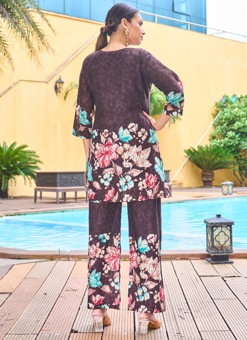Cotton Wine Casual Wear Hand Work Readymade Cord Set 384913