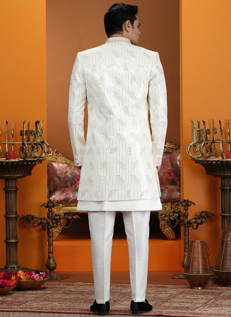Cream Art Silk Computer Thread Work Wedding Wear Readymade Indowestern Sherwani SW695596