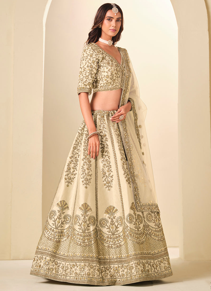 Cream Art Silk Embroidery Work Wedding Wear Lehenga Choli SW152906