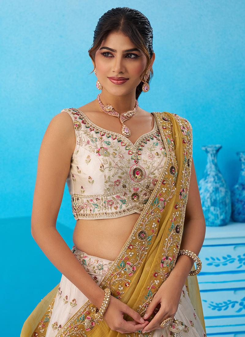 Cream Tissue Sequins Work Reception Wear Lehenga Choli SW131658