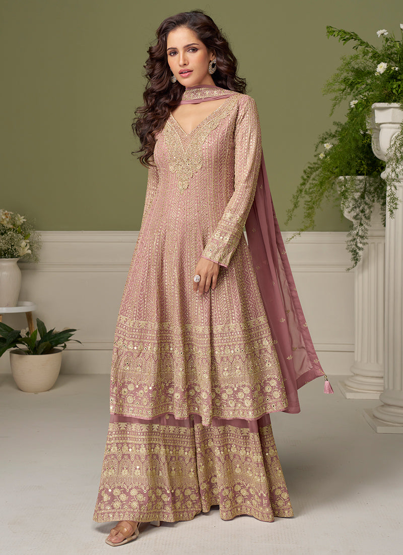 Dusty Rose Georgette Sequins Work Wedding Wear Readymade Plazzo Suit SW868808