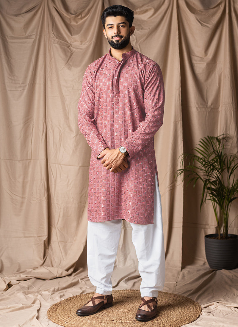 Dusty Viscose Rayon Weaving Work Festival Wear Readymade Kurta Pajama, styled in subtle dusty tone viscose rayon with graceful weaving work.