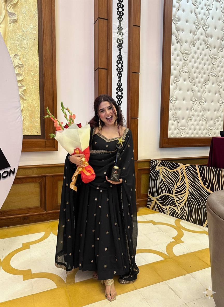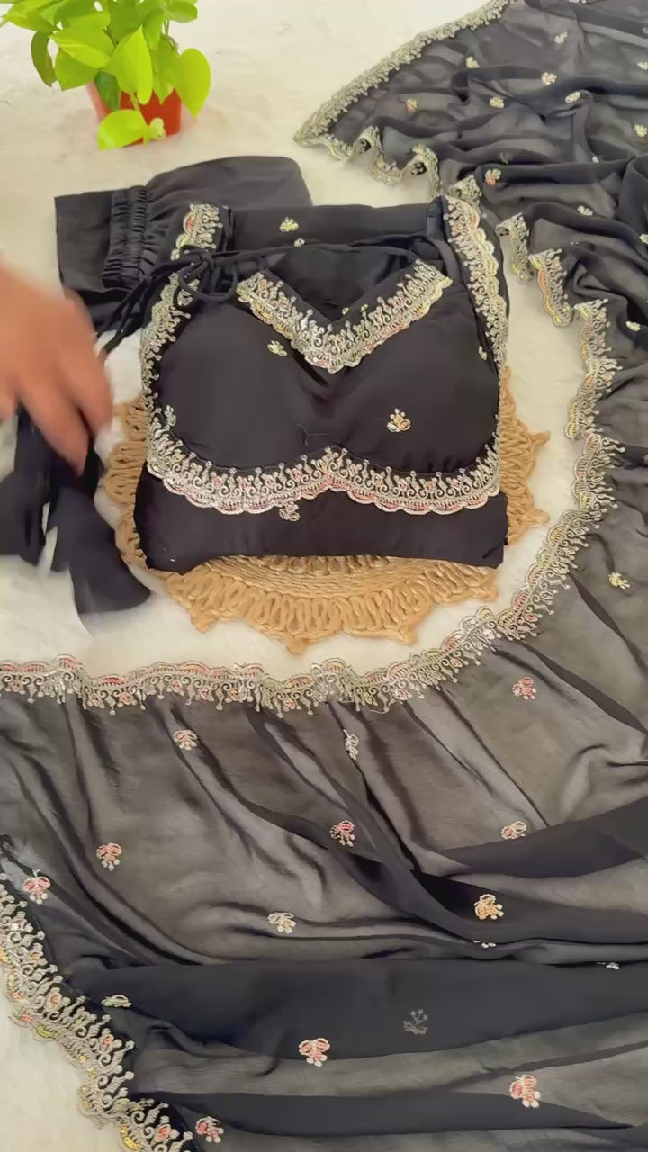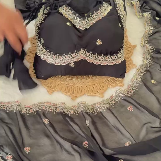 Faux Georgette Black Readymade Anarkali Gown featuring intricate embroidery work, ideal for festive wear.