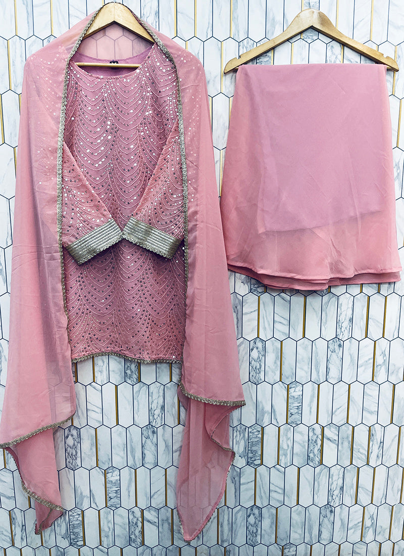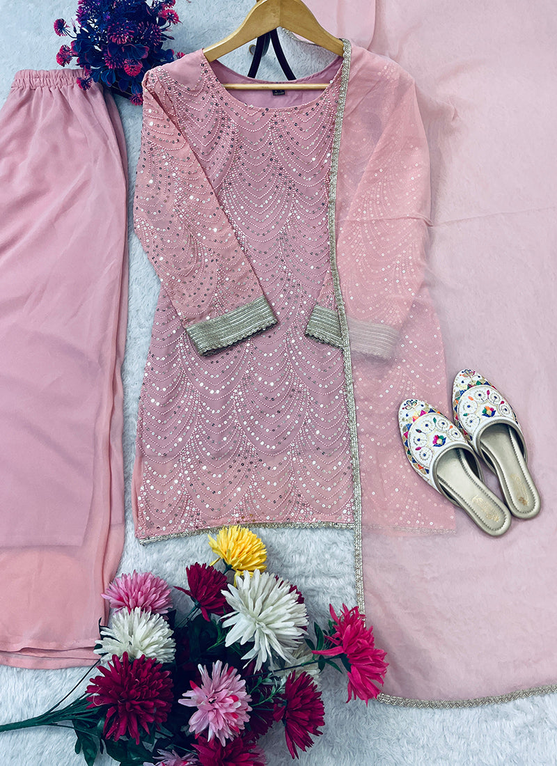 Faux Georgette Light Pink Eid Wear Embroidery Work Readymade Plazzo Suit 387199