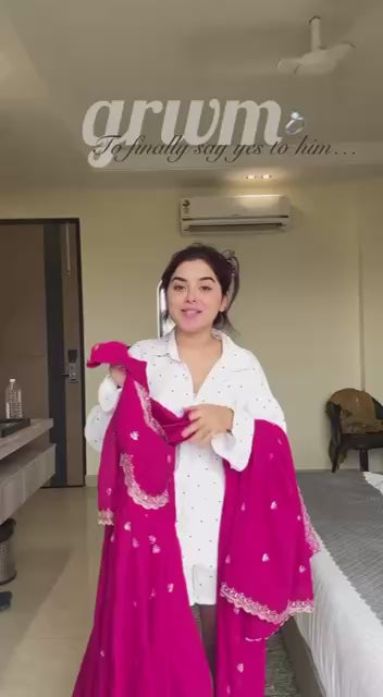 Faux Georgette Rani Pink Festival Wear Embroidery Work Readymade Anarkali Gown 385965