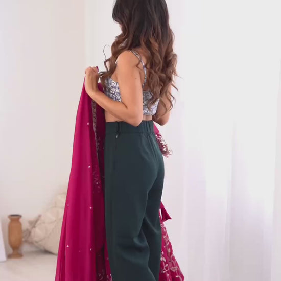 Faux Georgette Red Festival Wear Zari Work Readymade Salwar Suit showcases detailed zari work. Its unique red color and premium faux georgette fabric make it perfect for festive occasions.