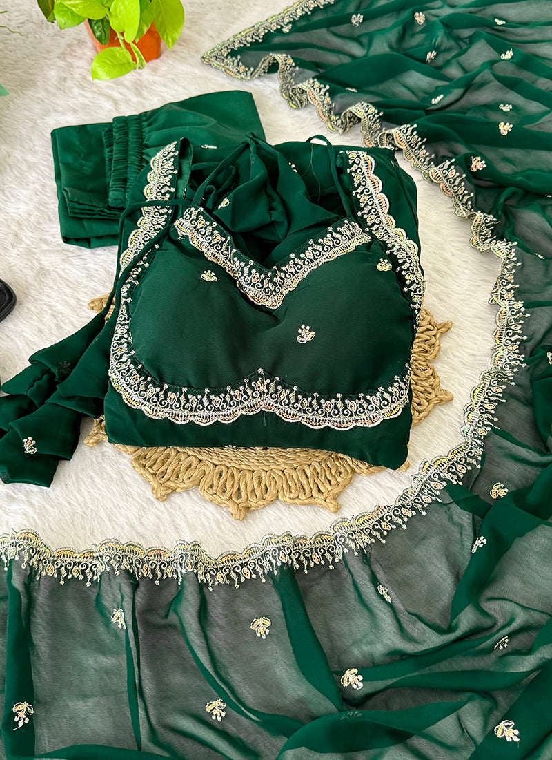 Georgette Green Party Wear Sequins Work Readymade Gown 386993