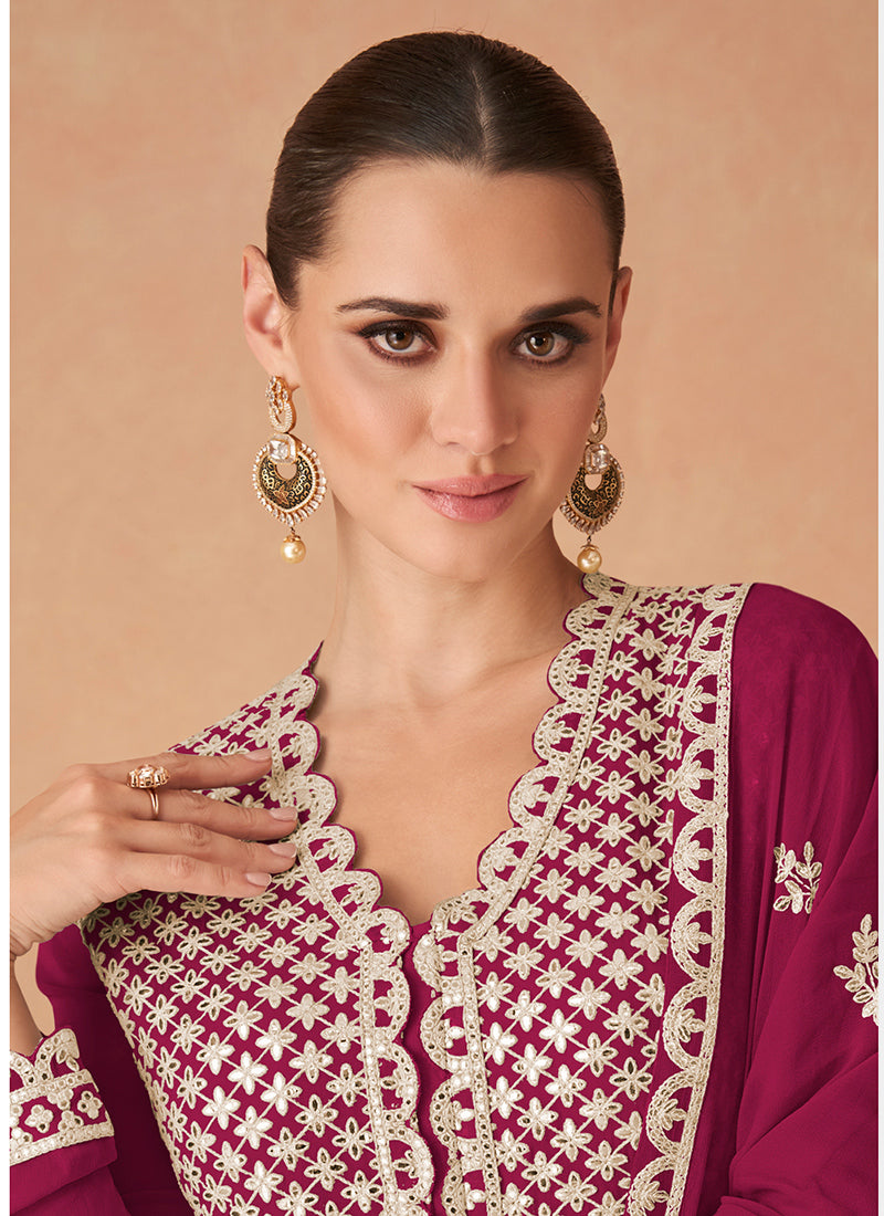 Georgette Magneta Wedding Wear Readymade Anarkali Gown with Zari Work