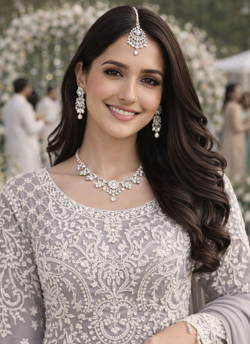 Stunning Grey Georgette Embroidery Work Party Wear Readymade Plazzo Suit featuring intricate embroidery work, perfect for party functions and special occasions.