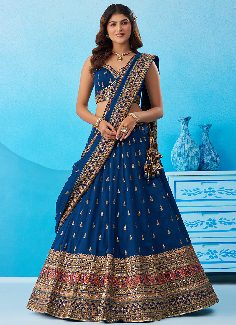 Navy Blue Chinon Sequins Work Occasional Wear Lehenga Choli SW618465