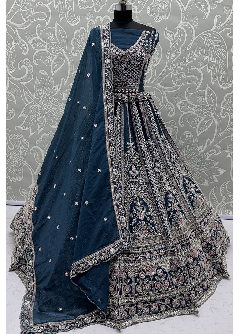 Navy Blue Satin Embroidery Work Bridal Wear Lehenga Choli SW214111