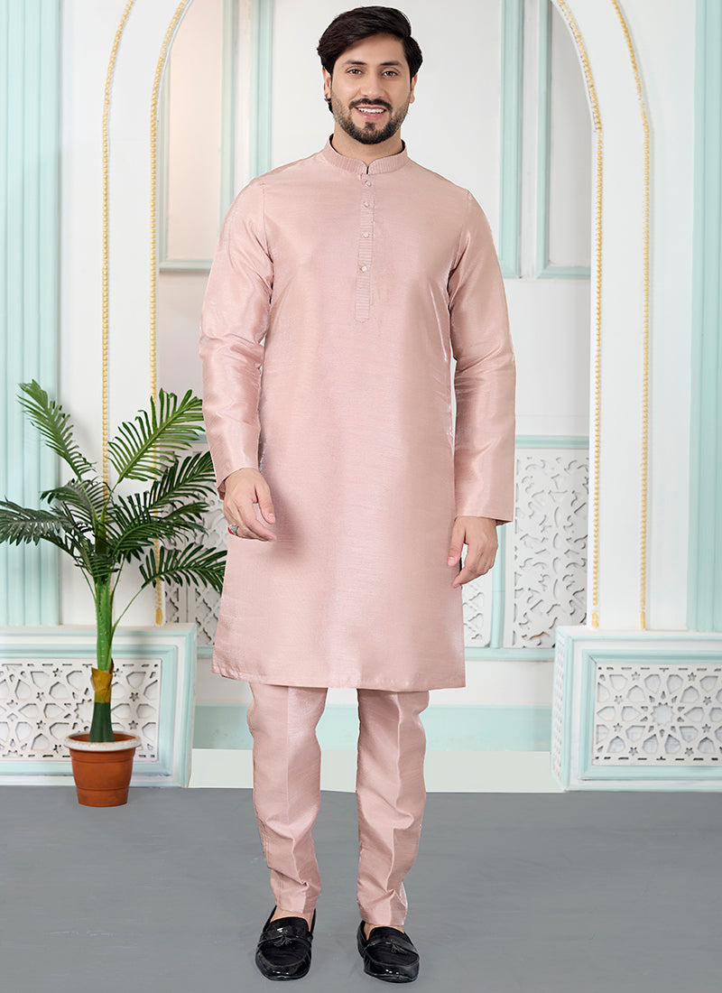 Onion Art Silk Pintux Occasional Wear Readymade Kurta Pajama, featuring a unique onion shade art silk enhanced with pintuck craftsmanship.