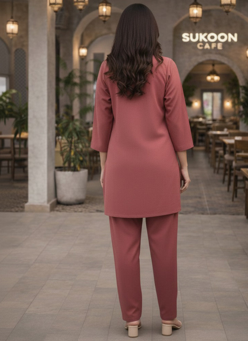 Peach Cotton Thread Work Daily Wear Readymade Cord Set SW169407