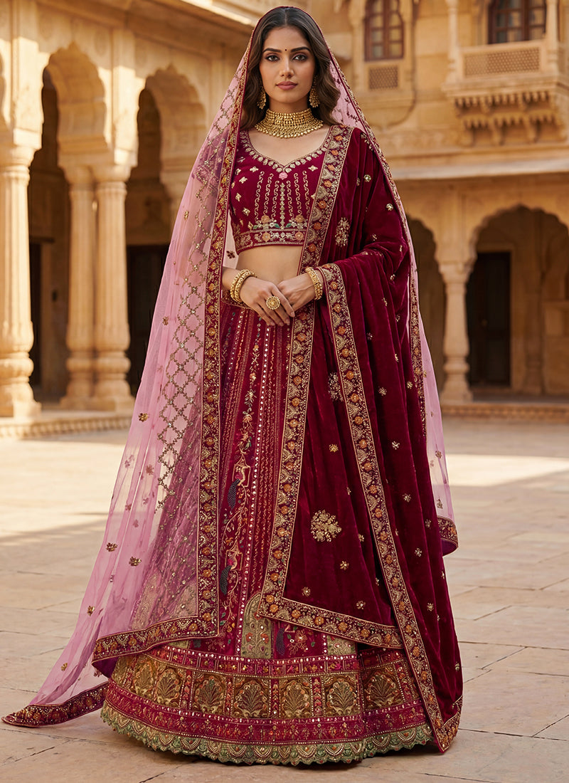 Pink Velvet Embroidery Work Bridal Wear Bridal Lehenga Choli SW401162