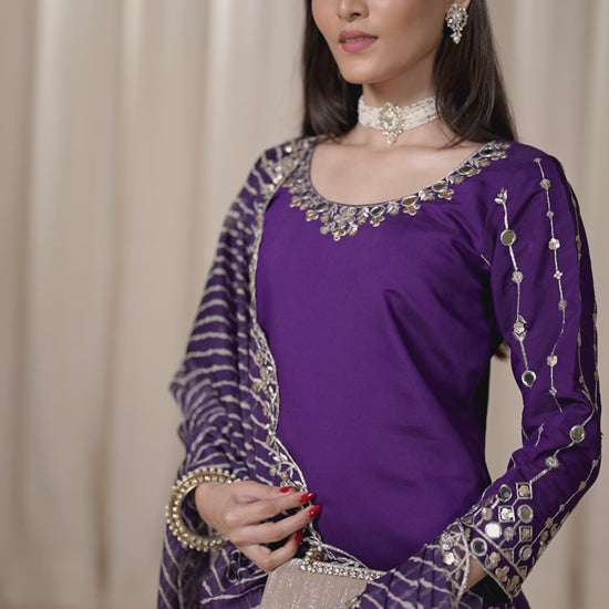 Roman Silk Purple Patiala Suit featuring exquisite zari embroidery, perfect for wedding wear.