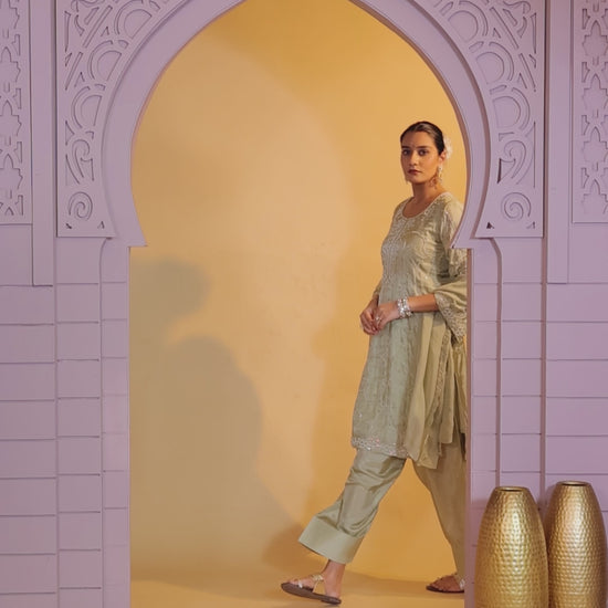 Satin Silk Green Party Wear Pattern Pc Work Readymade Salwar Suit 386170
