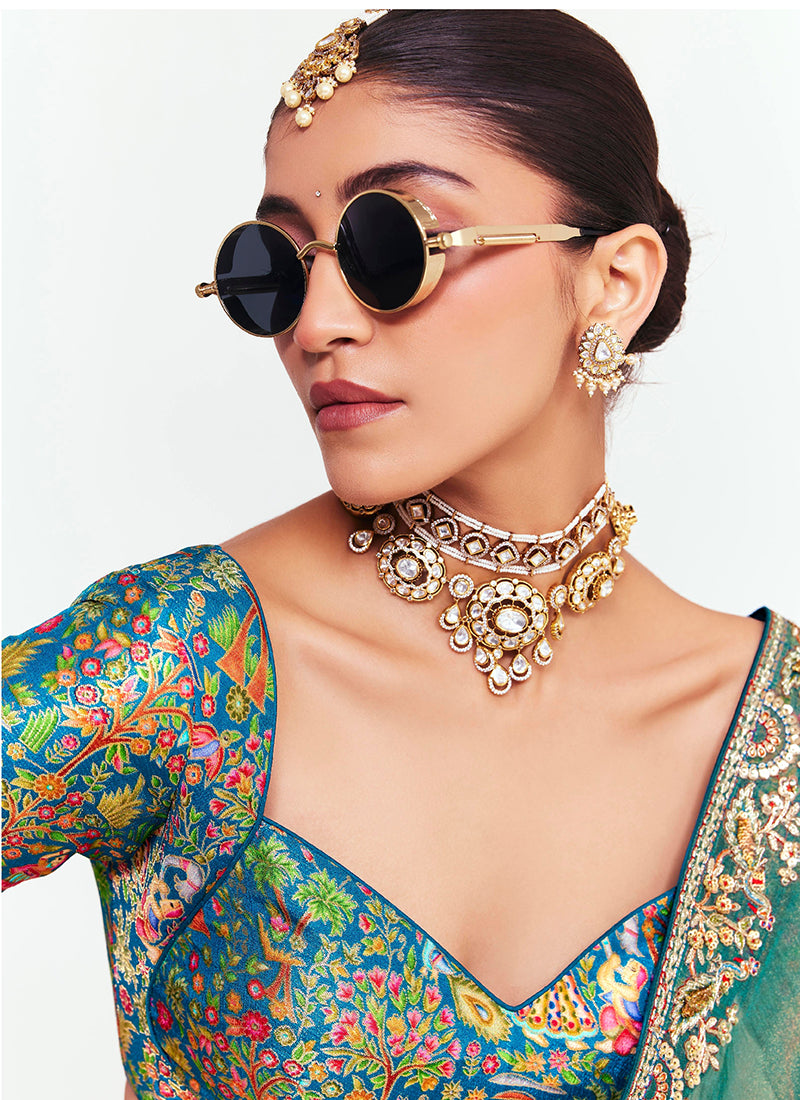 Sea Green Fancy Silk Border Work Wedding Wear Wedding Saree SW751551