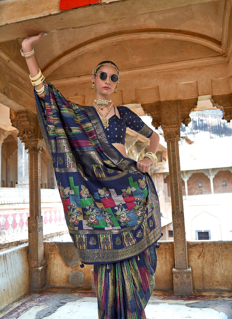 Silk Multi Color Party Wear Saree with Elegant Weaving Work