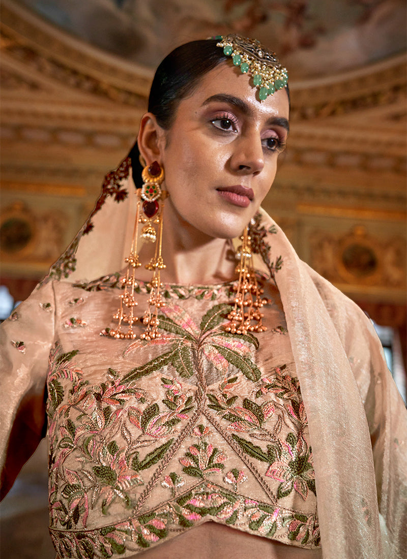 Soft Tissue Cream Festival Wear Thread Embroidery Work Designer Saree designed with subtle embroidery for a timeless festive appeal.
