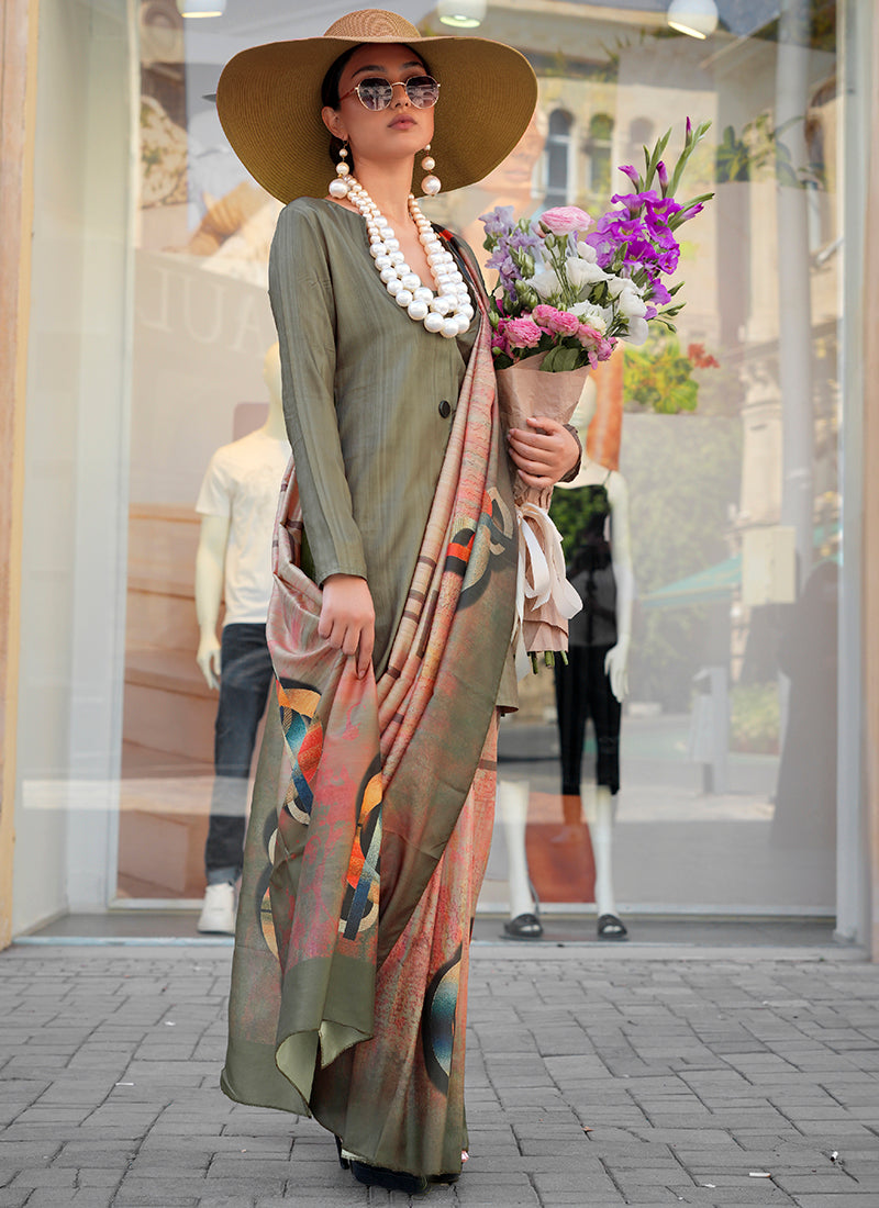 Twill Silk Multi Color Occasional Wear Digital Print Work Designer Saree tailored for a chic ethnic look with premium silk feel.