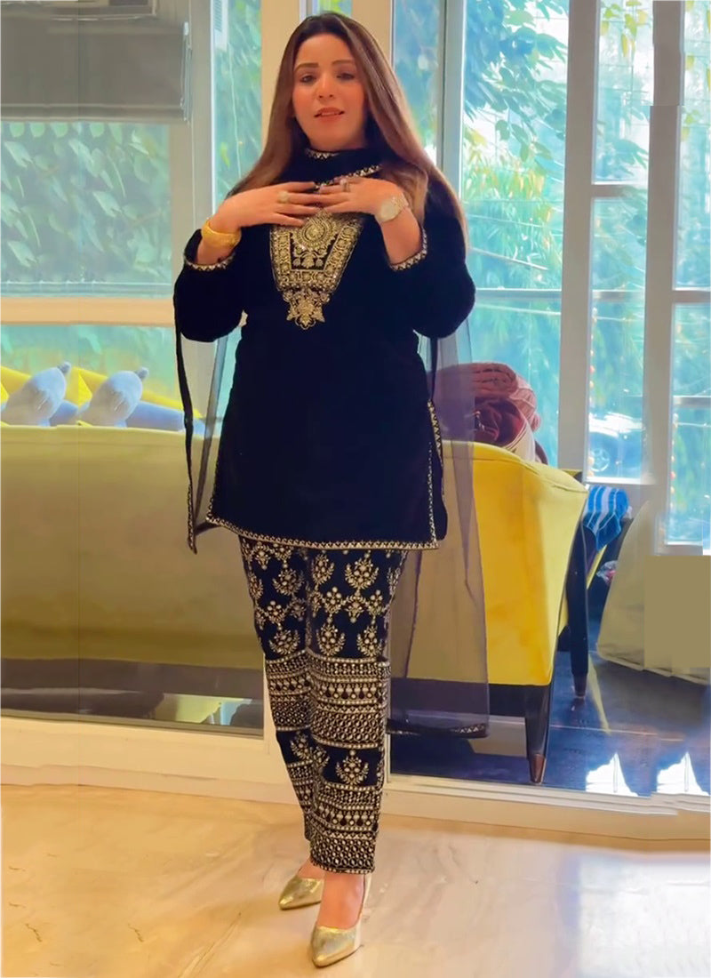 Elegant Velvet Navy Blue Occasional Wear Readymade Salwar Suit featuring detailed embroidery work, ideal for sophisticated events and grand festive gatherings.