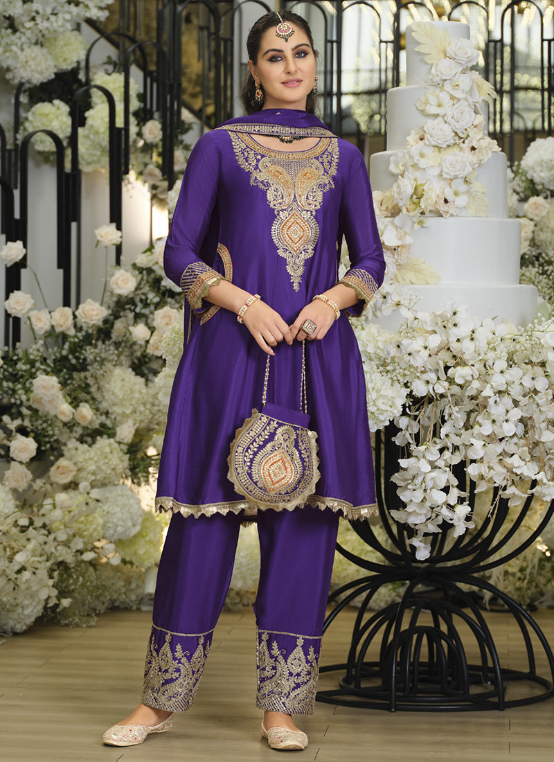 Violet Chinon Embroidery Work Wedding Wear Readymade Salwar Suit SW834380