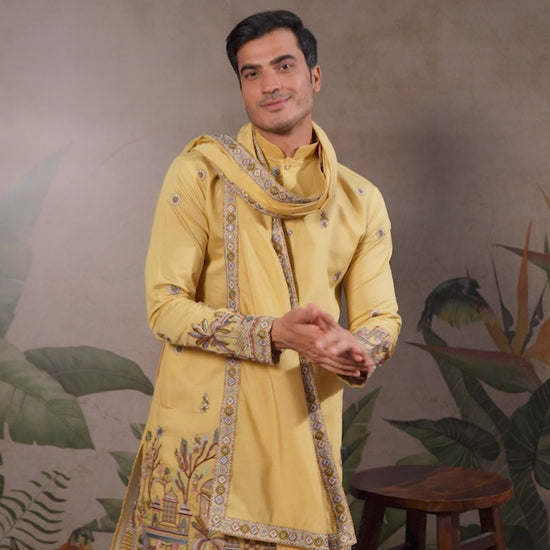 Viscose Silk Mustard Yellow Party Wear Readymade Kurta With Dupatta with Embroidery Work