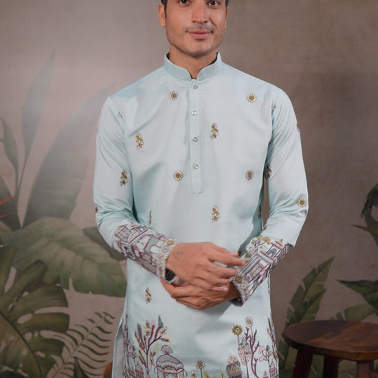 Viscose Silk Powder Blue Party Wear Readymade Kurta With Dupatta with Embroidery Work
