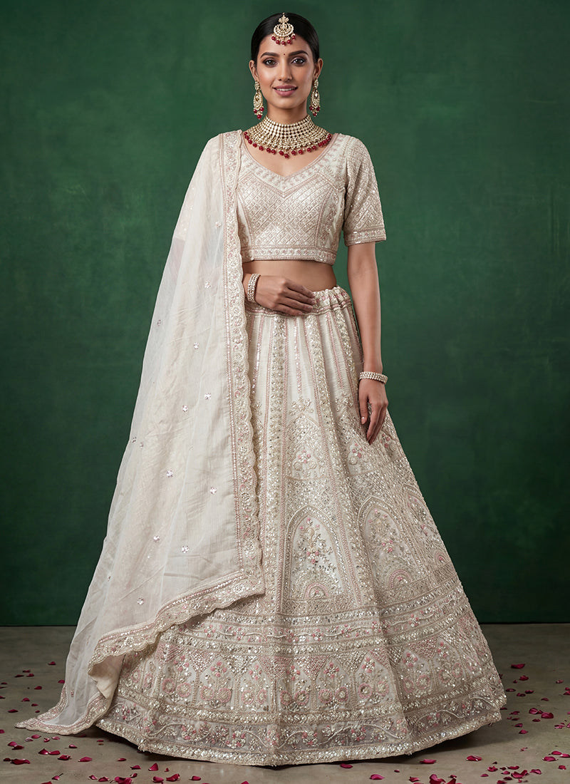 White Satin Embroidery Work Bridal Wear Lehenga Choli SW938113